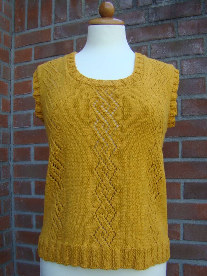 Ik kreeg van BN-Agenturen het fijne garen Fonty Bohéme toegestuurd in een okergele kleur. Ik wilde een ontwerp met ajourpatroon erin breien.