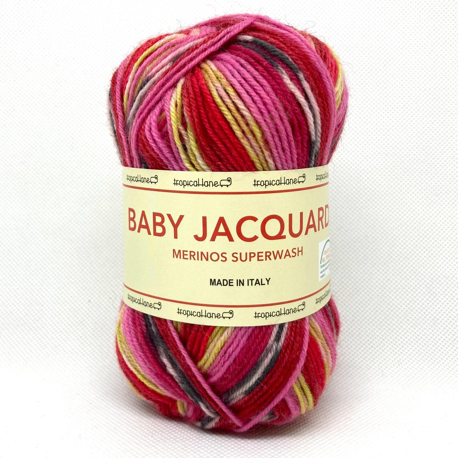 Dit sokken breipakket bevat 2 bollen van 50gr. Tropical lane Baby Jaquard (roze verloop) en 1 bol van 100 gr. Tropical lane Calzepui